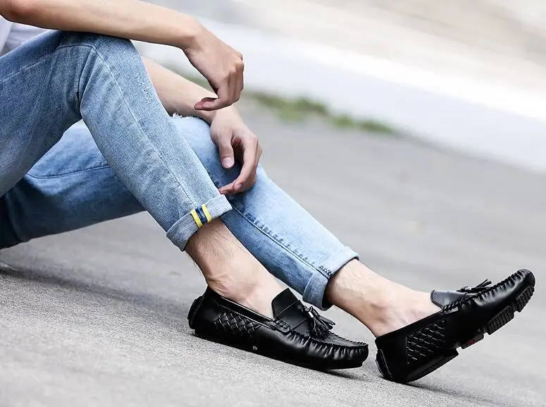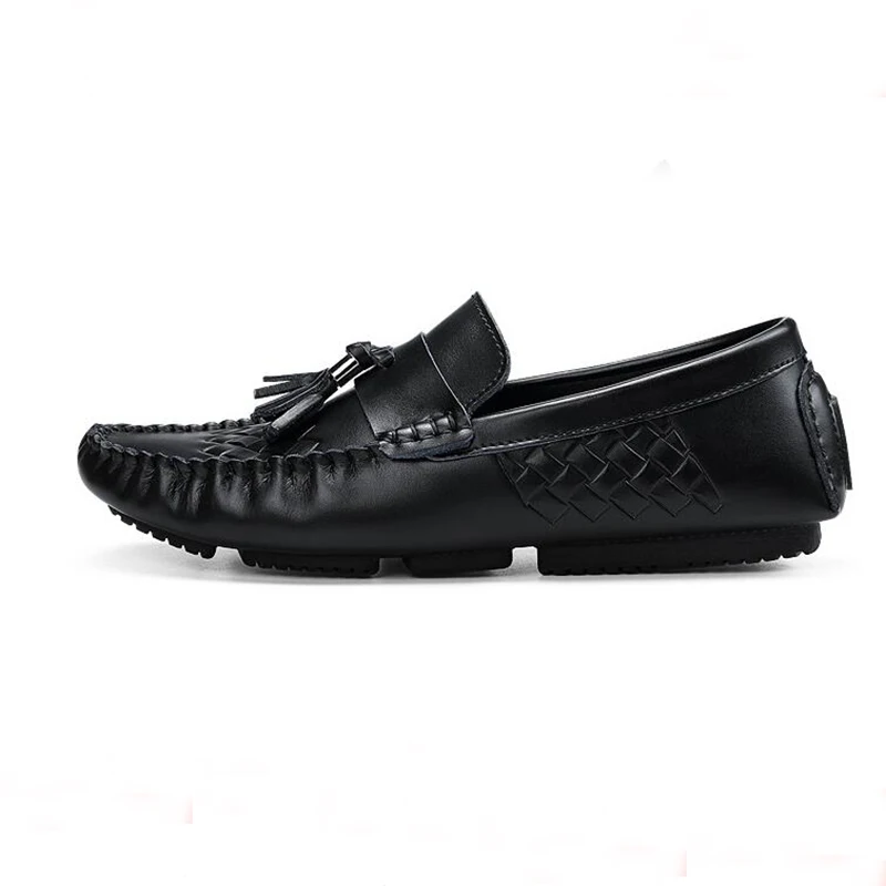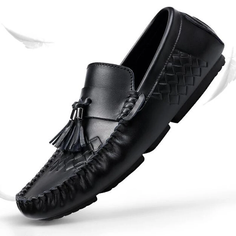 2020 spring new men's leather beanie shoes driving shoes fashion pure hand stitching soft bottom men's casual shoes Large size