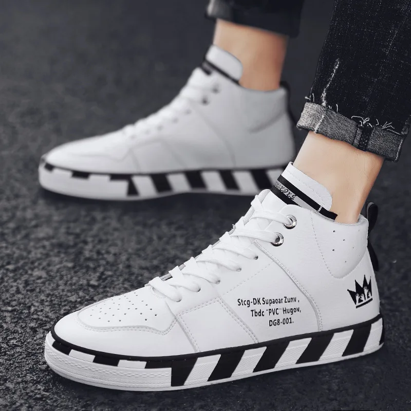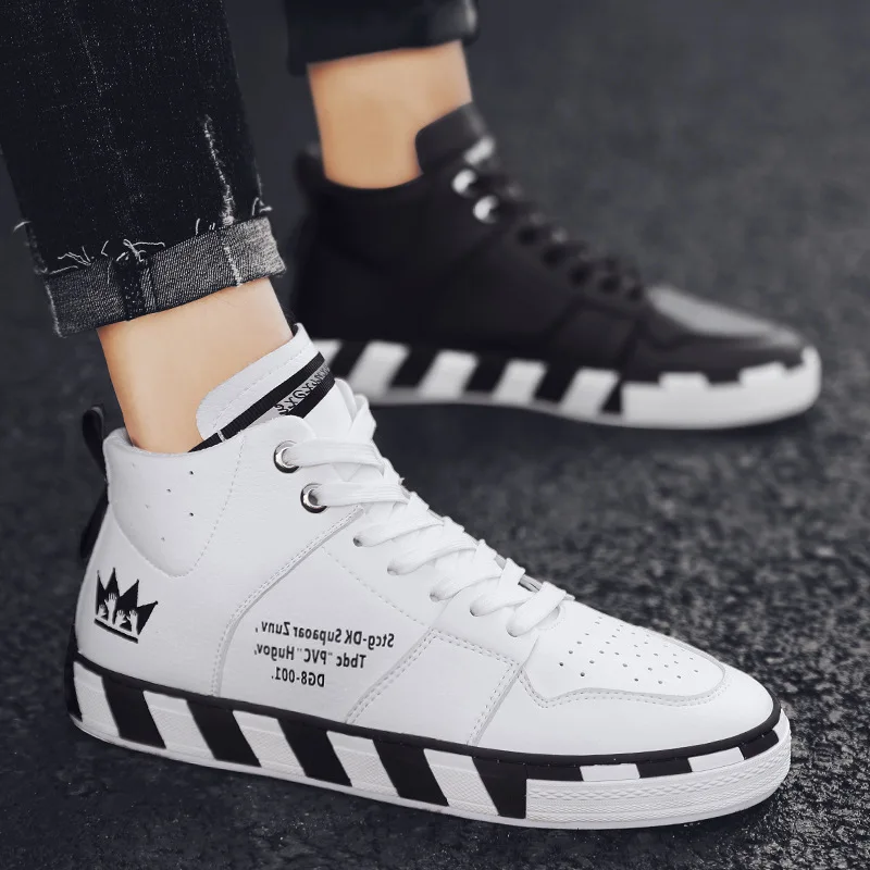 Men running Sneakers Breathable Sport Shoes White Black outdoor walking High-top sneakers Male Lace Up Platform jogging shoes