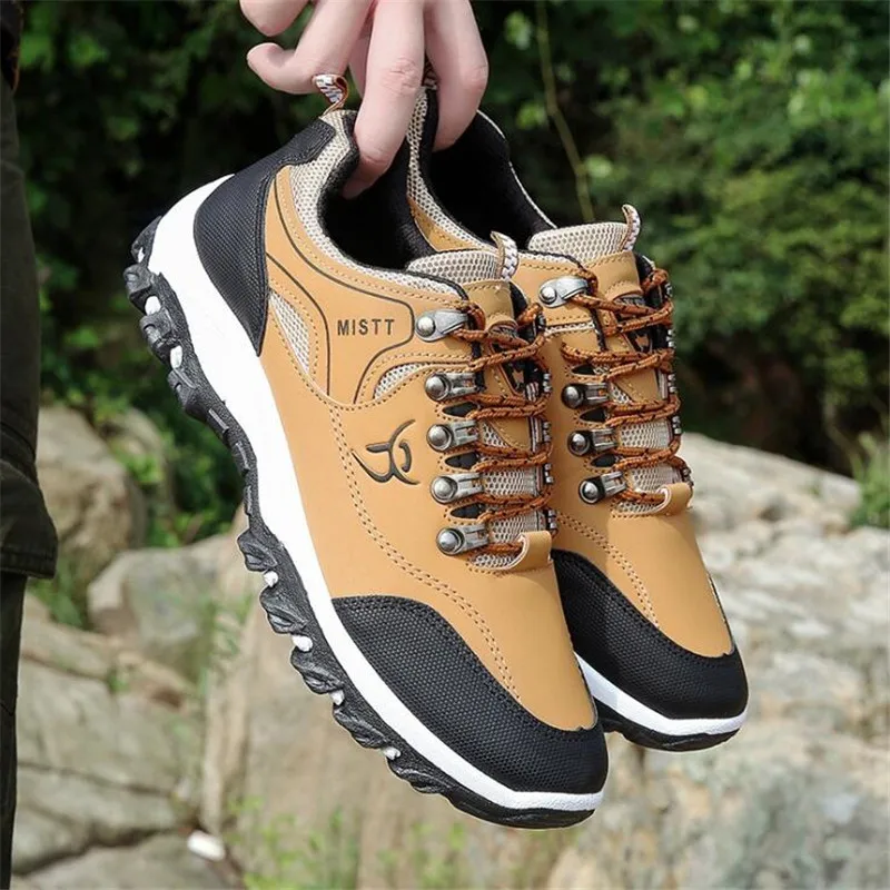ELGEER Men Leather Outdoor Hiking Sneakers Male Shoes Adult Non-Slip Casual Military Army Shoes Autumn Hard-wearing Footwear