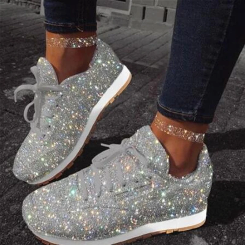 2020 New Casual Women Bling Sneakers Flat Ladies Vulcanized Shoes Female Height Increase Chunky Sne